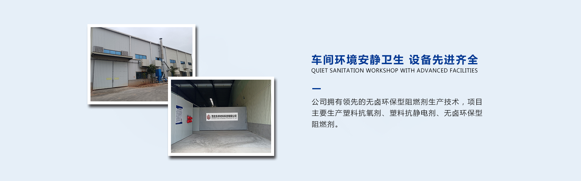 公司擁有先進(jìn)的無(wú)鹵環(huán)保型阻燃劑生產(chǎn)技術(shù),項(xiàng)目主要生產(chǎn)塑料抗氧劑、塑料抗靜電劑、無(wú)鹵環(huán)保型阻燃劑。